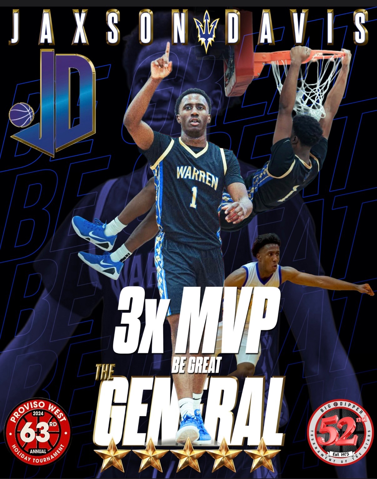 During his sophomore campaign Jaxson averaged 19.4 points, 6 assists, 4.4 rebounds, 2.8 steals this past season while leading his Blue Devils (27-11) to Back to Back Proviso West Holiday Tournament Championship, Back to Back Regional Championship, Back to Back Sectional Championship, Super-Sectional Championship and a Second Place finish in the IHSA State Class 4A. Jaxson was the fastest to score his 1.000 points at Warren Township HS.